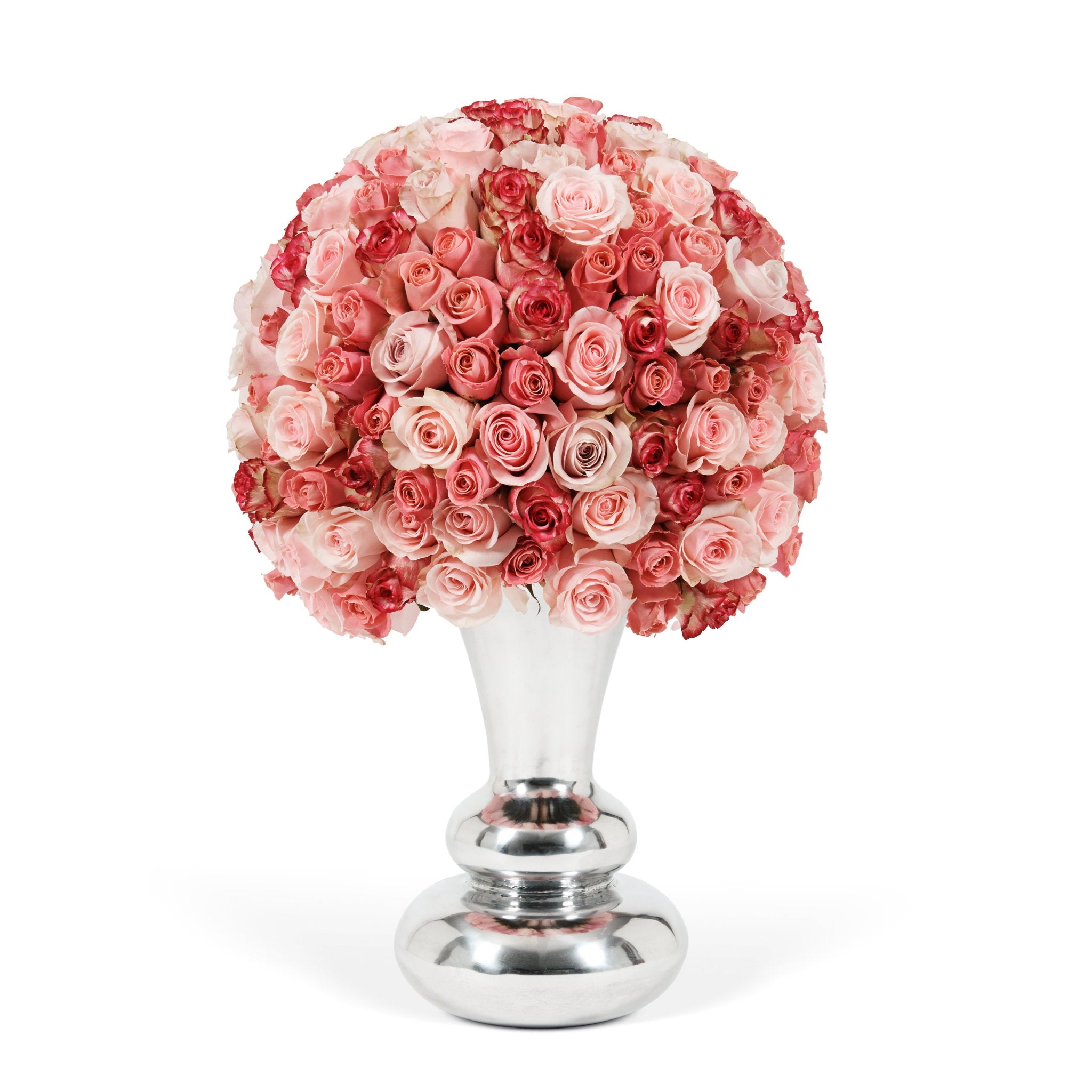A solid‑alloy vase inspired by a gentleman’s handkerchief, crowned with a high, dominant dome of Classic Roses - crafted to order for a console or side table where romance meets architectural grace. A memorable conversation piece for refined interiors.