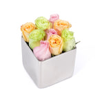 Classic Roses presented in a luxurious silver cube vase - precise, modern, and hand‑arranged to order. Perfect for a coffee table vignette, a bedside console, or an office credenza with a refined edge.